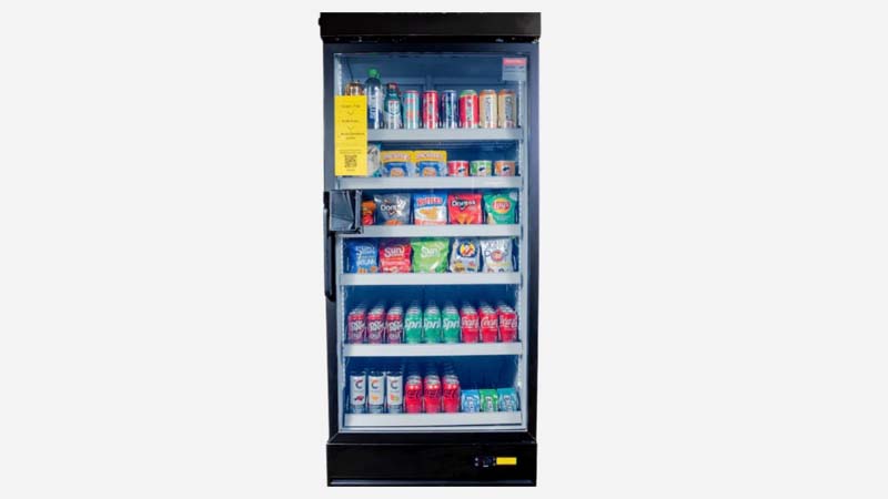 Combining the flexibility of a micro-market with the security of a vending machine. The cooler remains locked until payment is processed via mobile app or card terminal, making it ideal for locations that need fresh product variety with added control.